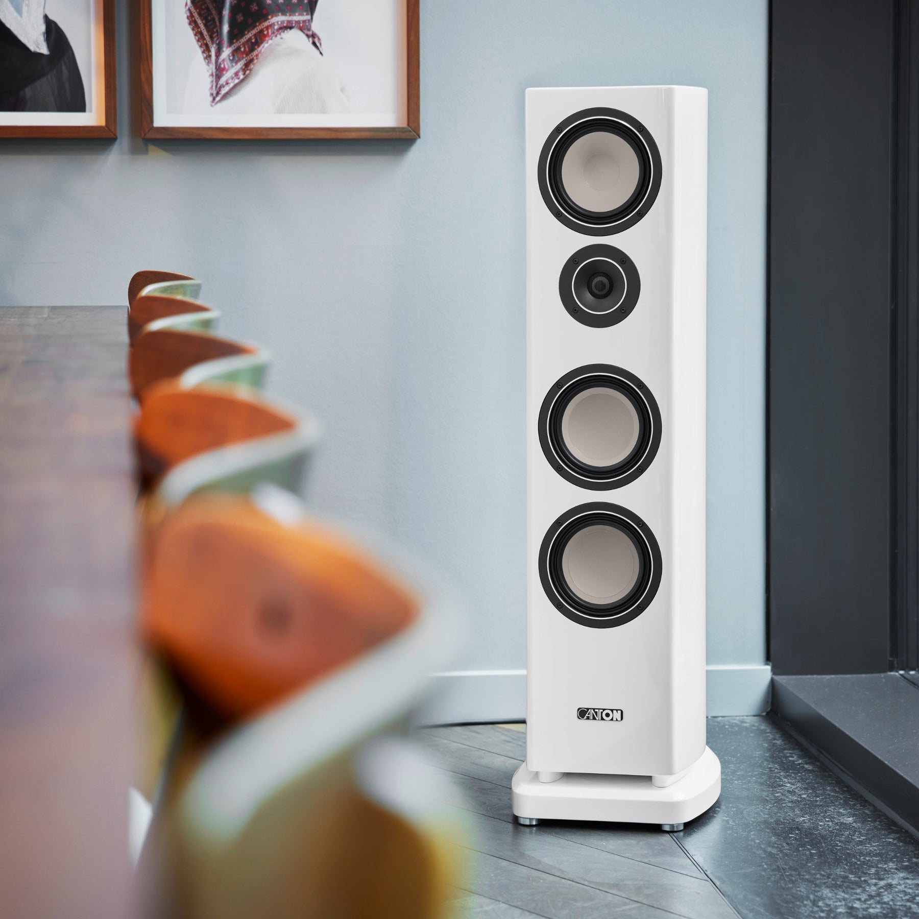 The new cabinets not only look superb, they also have to meet Canton's high technical requirements. The revised design ensures that there is more interior volume available to tune the speakers with more bandwidth in the low frequency range. This gives the new Vento speakers an even more contoured and clean sound. On the other hand, the revised cabinet radii and the new basic shape ensure less sound interference from the cabinet itself. With a variety of cabinet finishes available, the modern and timelessly elegant Vento loudspeaker models feel at home in many interior design styles. At the same time, the cabinets of the new Ventos meet the highest standards of workmanship. The premium speakers are available in white and black "high gloss" lacquers.