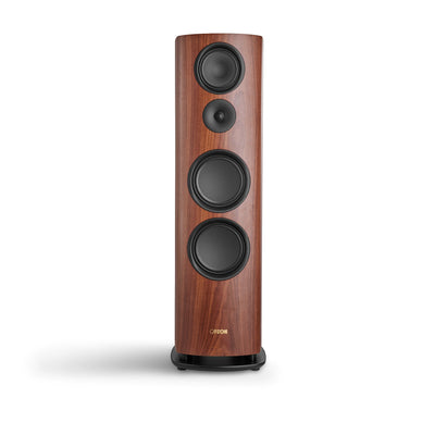 The Reference 2023 speakers are manufactured with the utmost care at the company headquarters in Weilrod, Germany. Thanks to the use of first-class materials and components, consistent and precise quality is guaranteed. The high-quality walnut veneer is refined using a special sanding technique and matte lacquer treatment.