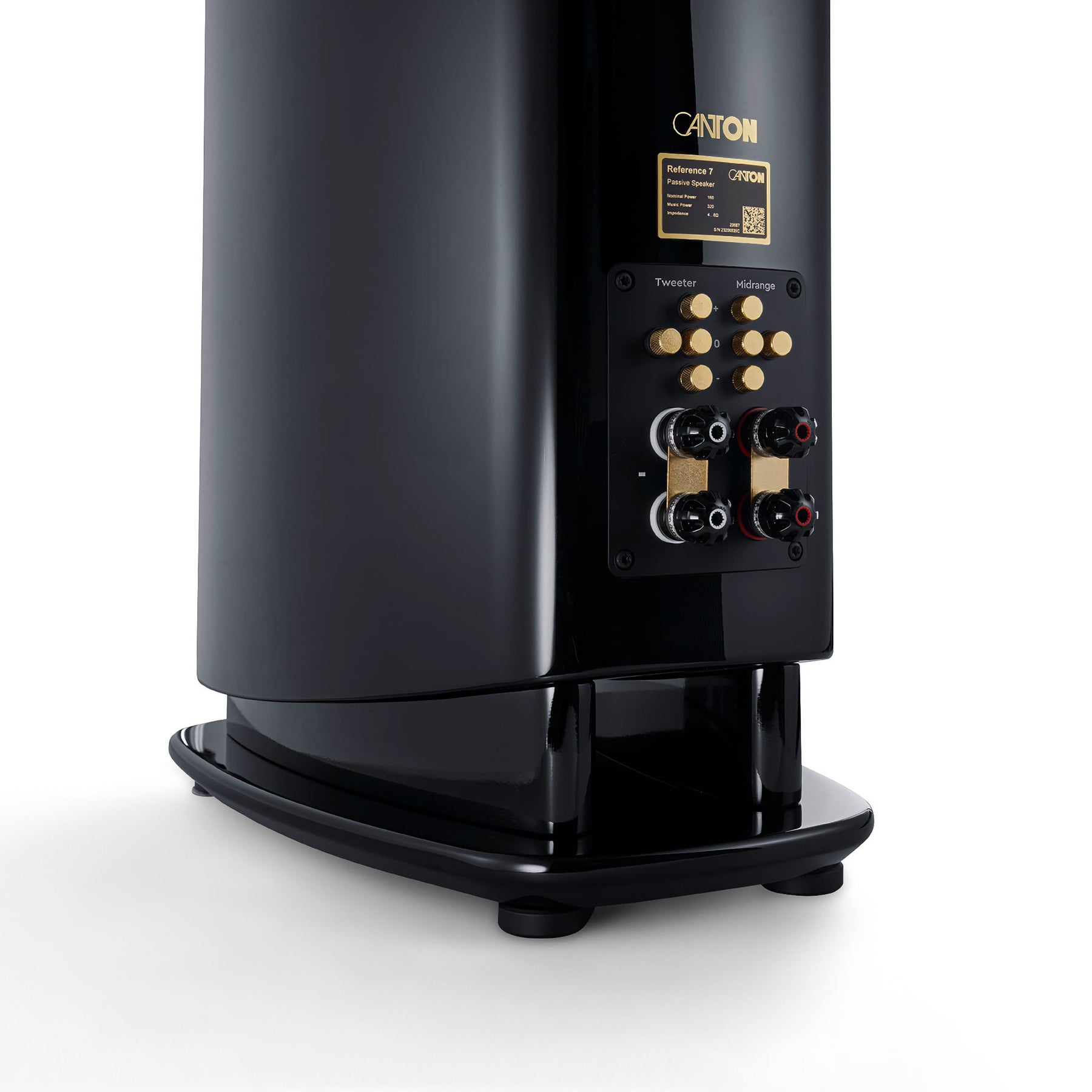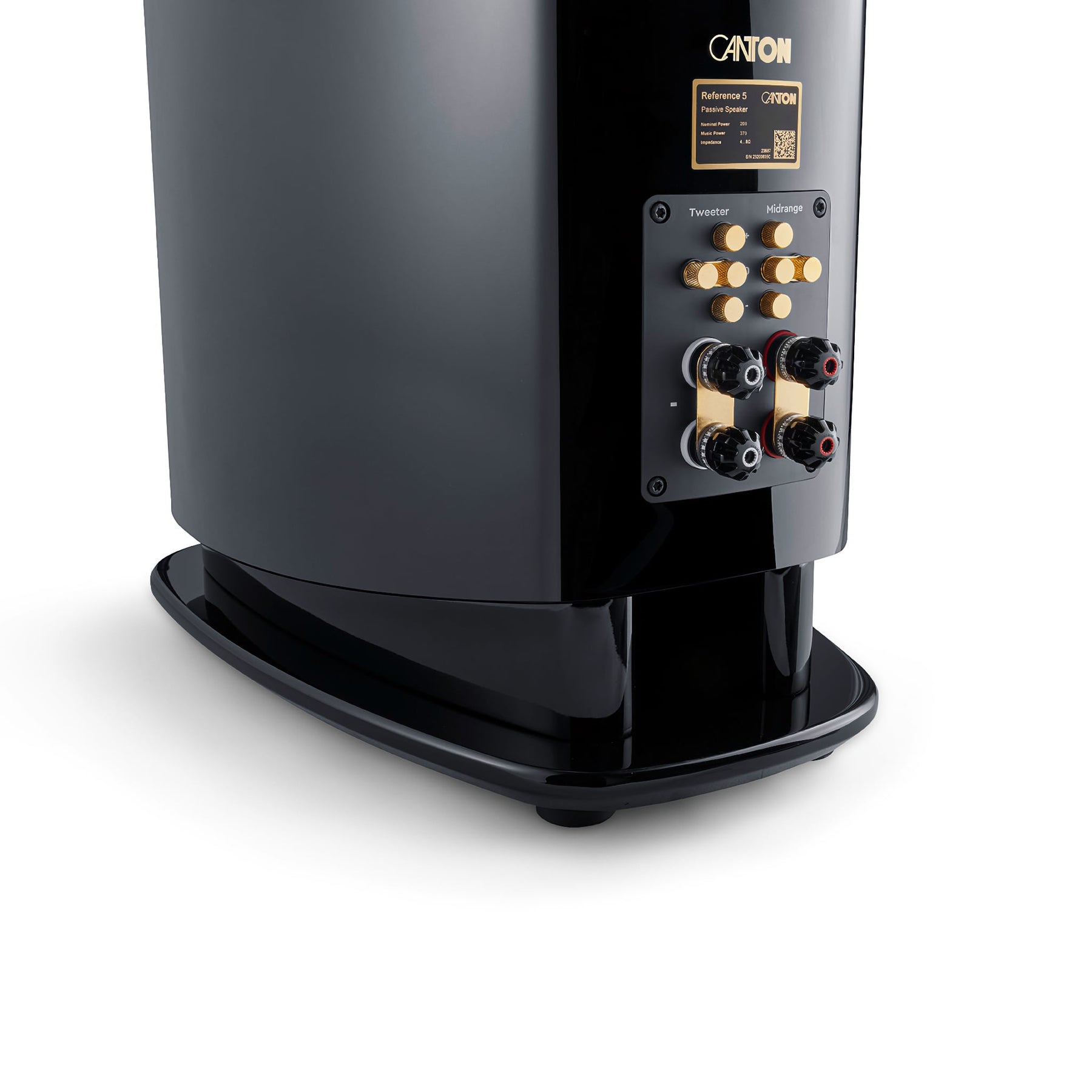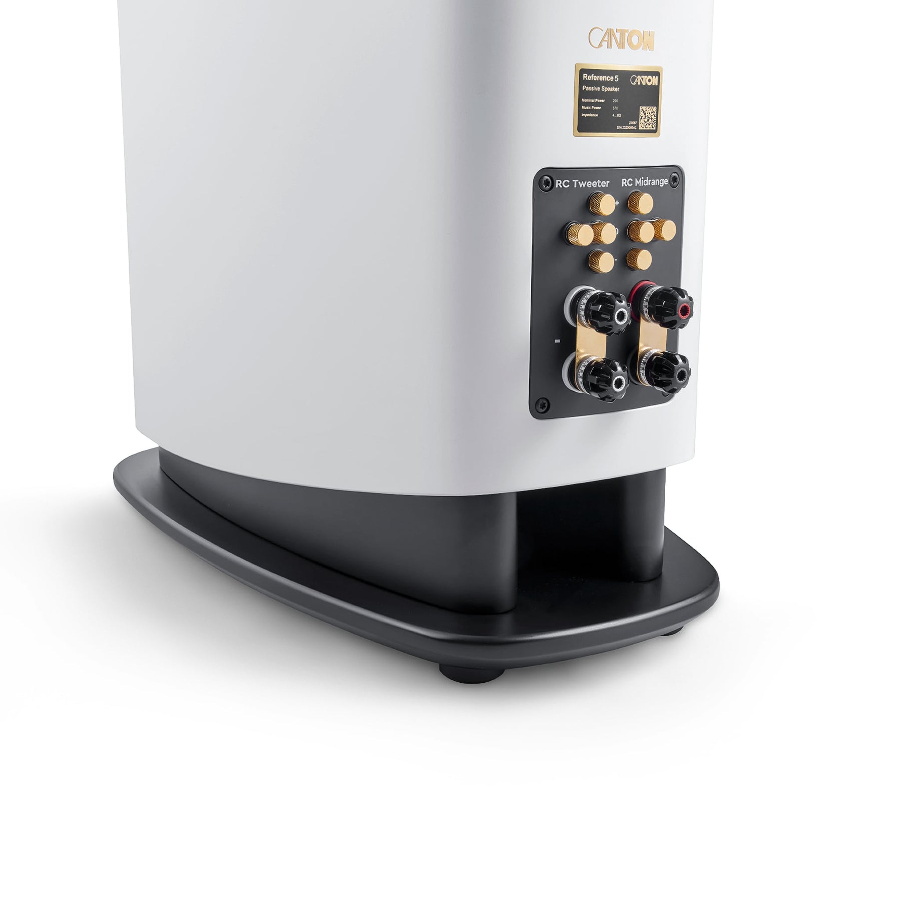 The Reference 5 speakers are equipped with high-quality WBT nextgen™ connectors and allow bi-wiring and bi-amping. These connectors are the basis for excellent sound quality and provide long-term stable contact. If you do not want to use the bi-wiring or bi-amping mode, high-quality hard-gold-plated copper bridges are included. The Reference 5s feature controls on the speaker terminal for Canton's RC (Room Compensation) technology. With this level adjustment, the sound pressure levels of the midrange and tweeter can be sensitively adjusted in 1.5 decibel steps. This allows the speakers to be optimally adapted to personal listening tastes and room acoustics.