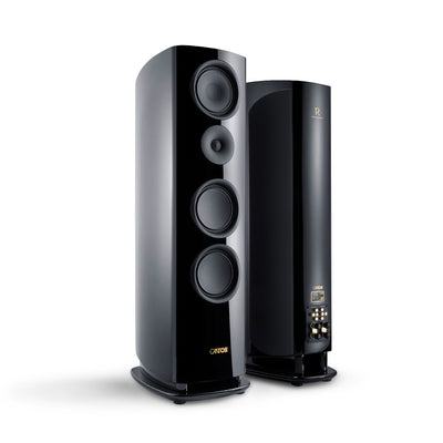 The Reference 2 loudspeakers integrate all drivers flush into the round baffle with the aid of the new 3D ASW (Asymetric Waveguide Ring) cover rings made of polyoxymethylene (POM). These optimize the dispersion characteristics in the high frequency and mid ranges. The enclosure design is focused on sound optimization and uses strong multi-layer laminate and sophisticated damping and internal stiffening for low-resonance enclosures. The new crossovers with epoxy resin-glass fabric composite and a copper overlay of 70 µm allows for large dim-ionized conductor cross sections and minimization of magnetic field interference, ensuring optimum performance and precise sound.