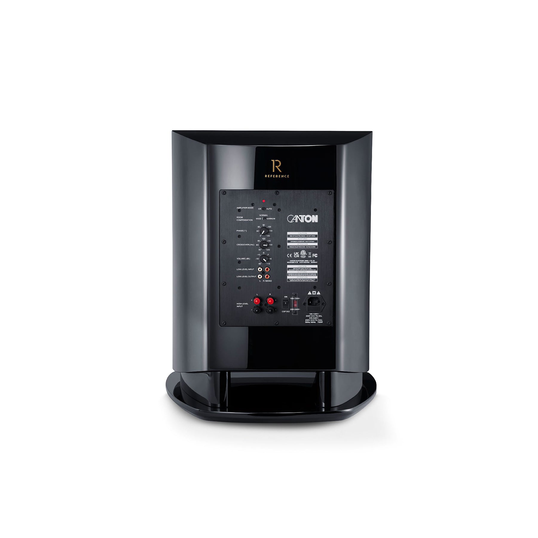The Reference Sub is a front-firing subwoofer with the support of a downfire passive radiator. In order to work precisely and confidently at any volume level, the 308 mm drivers are suspended in triple folded wave surrounds of the latest generation. Compared to conventional surrounds, the wave surrounds allow for much greater excursion and reduce sound distortion. The connection to an amplifier or AV receiver is made possible by the high- or low-level inputs. The volume level, crossover frequency and phase can be continuously adjusted on the powerful active module on the back of the subwoofer. The technical equipment of the 37kg Reference Subwoofer is completed by an automatic on/off switch.