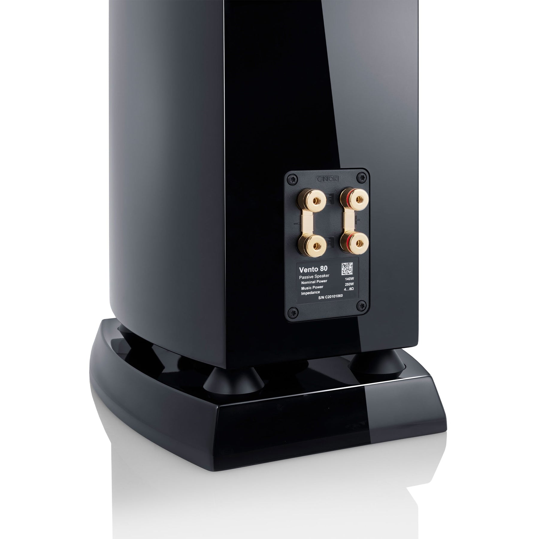 The new cabinets not only look high quality, they also have to meet Canton's rigid technical requirements. The revised design ensures that more interior volume is available to tune the speakers with more bandwidth in the low frequency range. As a result, the new Vento speakers perform with even more contour and cleanliness. In addition, the sharp-edged cabinet radii, the modified base, and the new basic shape ensure less sound interference from the cabinet itself. The newly designed base makes the Vento 80 appear to "float", giving the stately floorstanding speaker a light and elegant appearance. In addition, the base design ensures that the speaker is particularly uncritical in its placement.