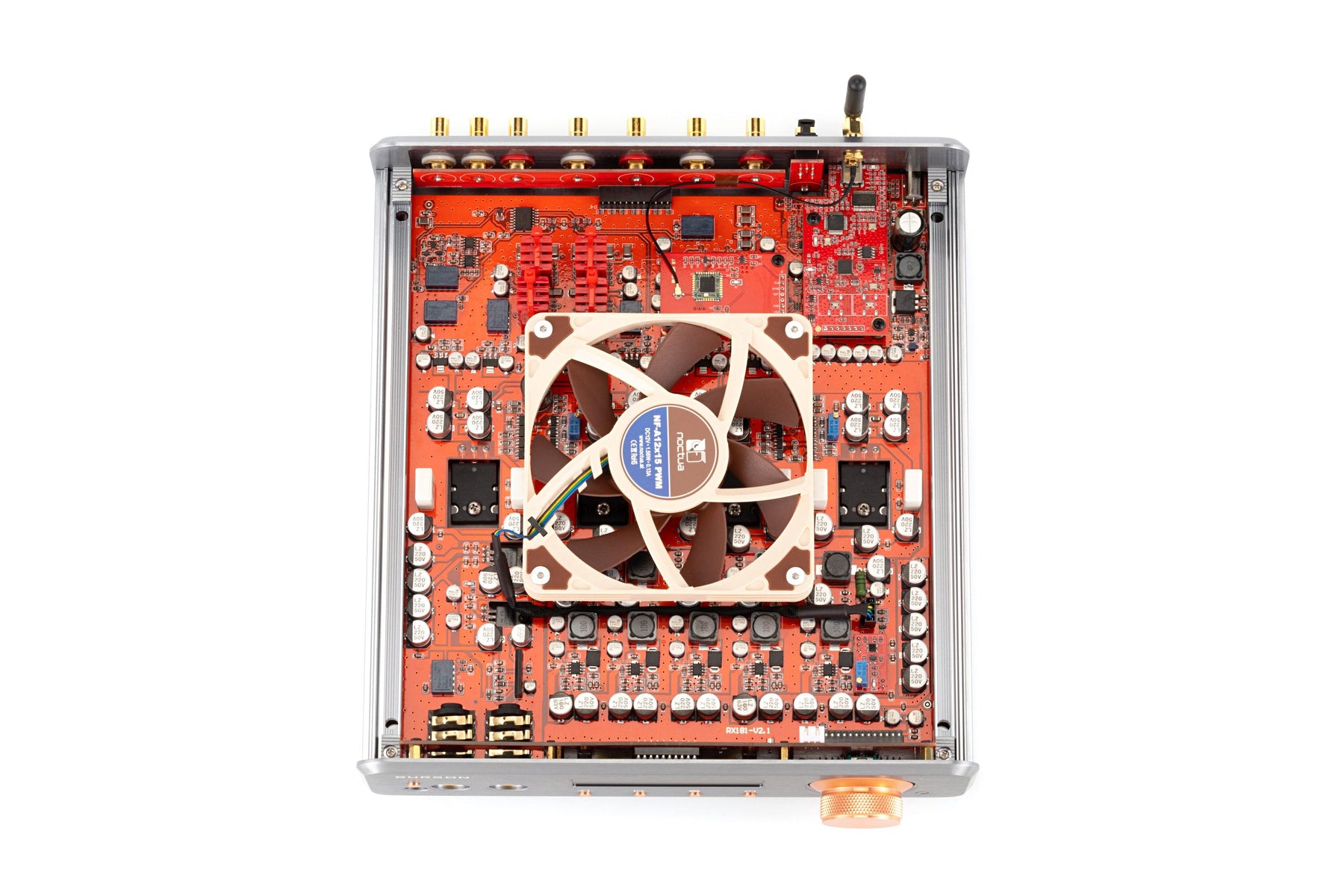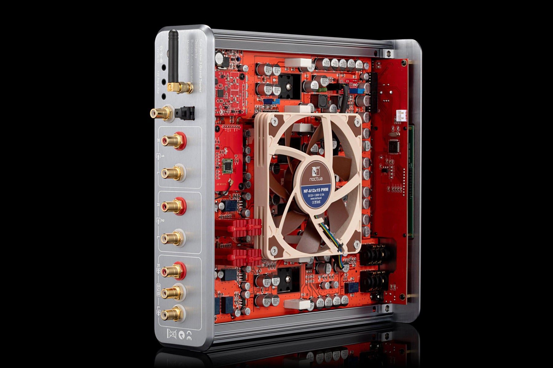 The thumping heart of the Conductor GT is 5 sets of Burson Max Current Power Supplies. Burson is pushing these MCPS to the limits of their potential, so much so that they consume 90W when idle and need active cooling.