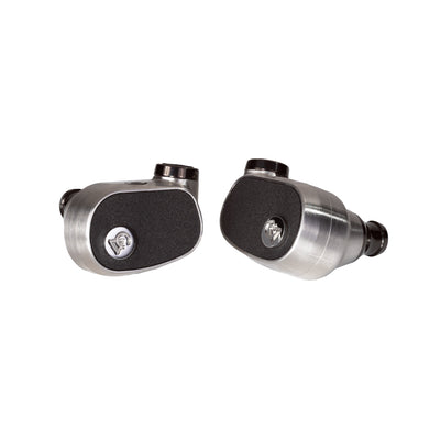 True Isobaric™ 64 Audio's cone-to-magnet isobaric driver config consists of 2 drivers connected by an acoustically inert coupling chamber resulting in better damping, lower distortion, twice the power handling, and extended LF response. A new 9mm dynamic driver was created with an upgraded magnet and Ti Cone to increase sensitivity. An acoustic low-pass filter originally developed for Fourté Blanc was used to further shape the sound.