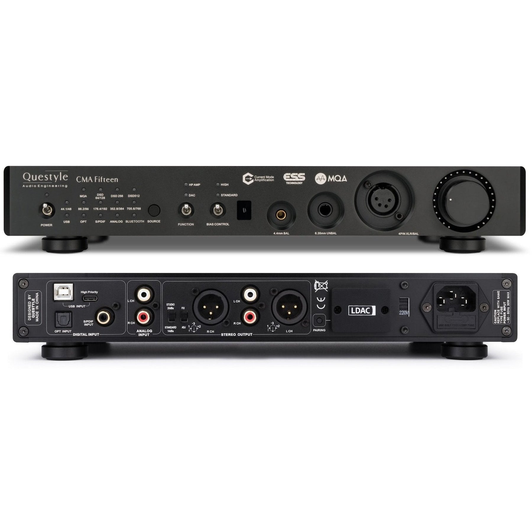 After 3 years of pre-research with ESS, Questyle selected the flagship DAC ES9038PRO, a decoding chip with the most powerful performance of any DAC invented to date, and jointly launched CMA Fifteen with ESS, supporting 32bit/768K and DSD 512 master band formats.